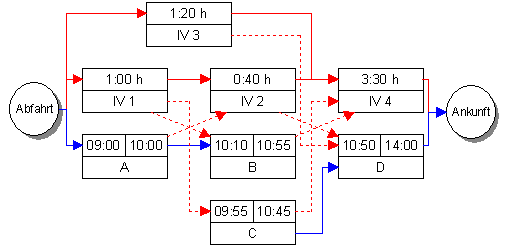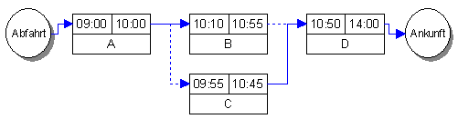 man etwa die Fahrzeiten für die Autoteilverbindungen, dann wird dieses